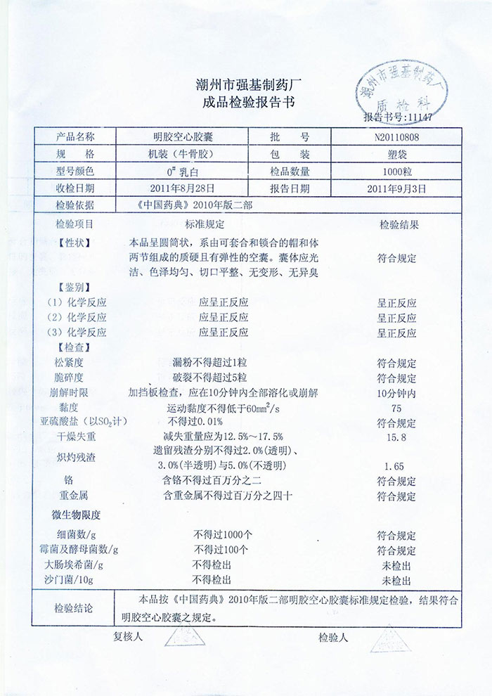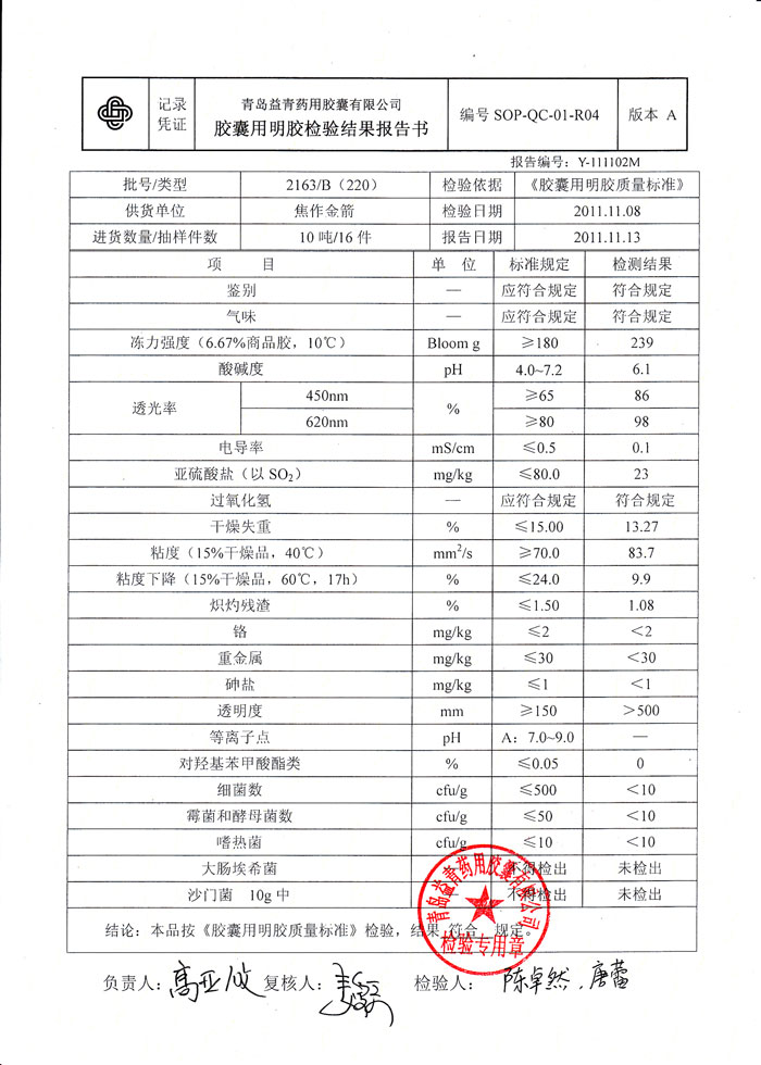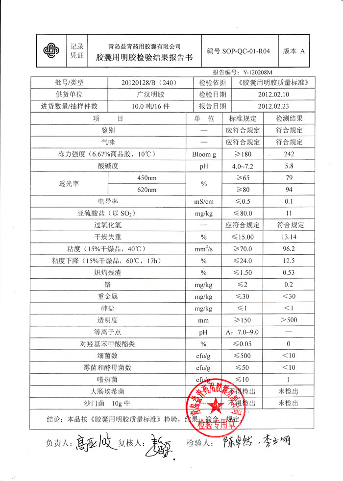 威海永康明胶检测报告1