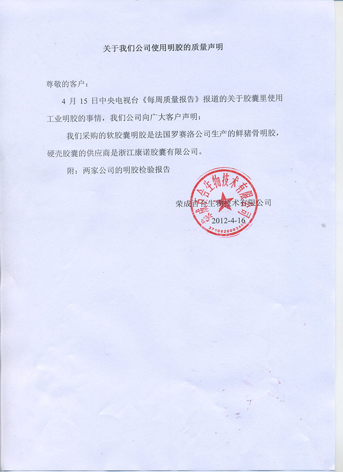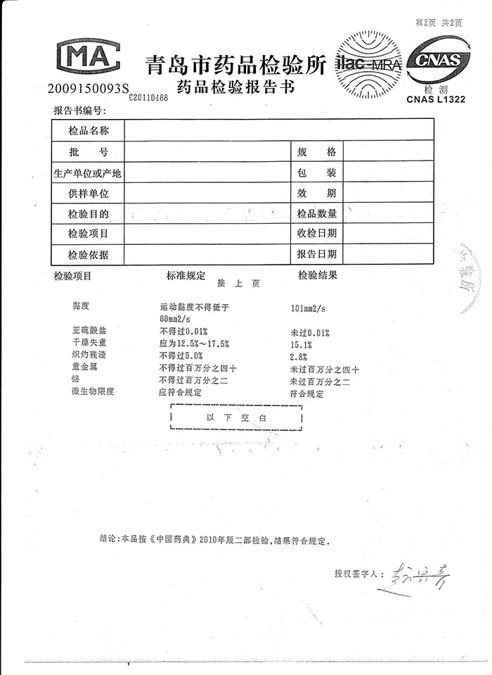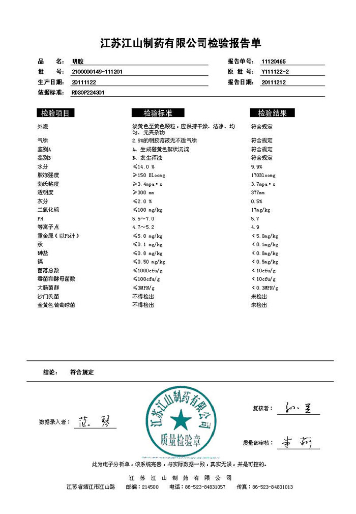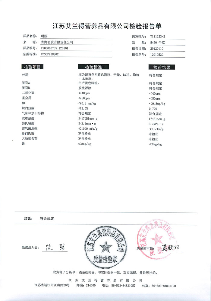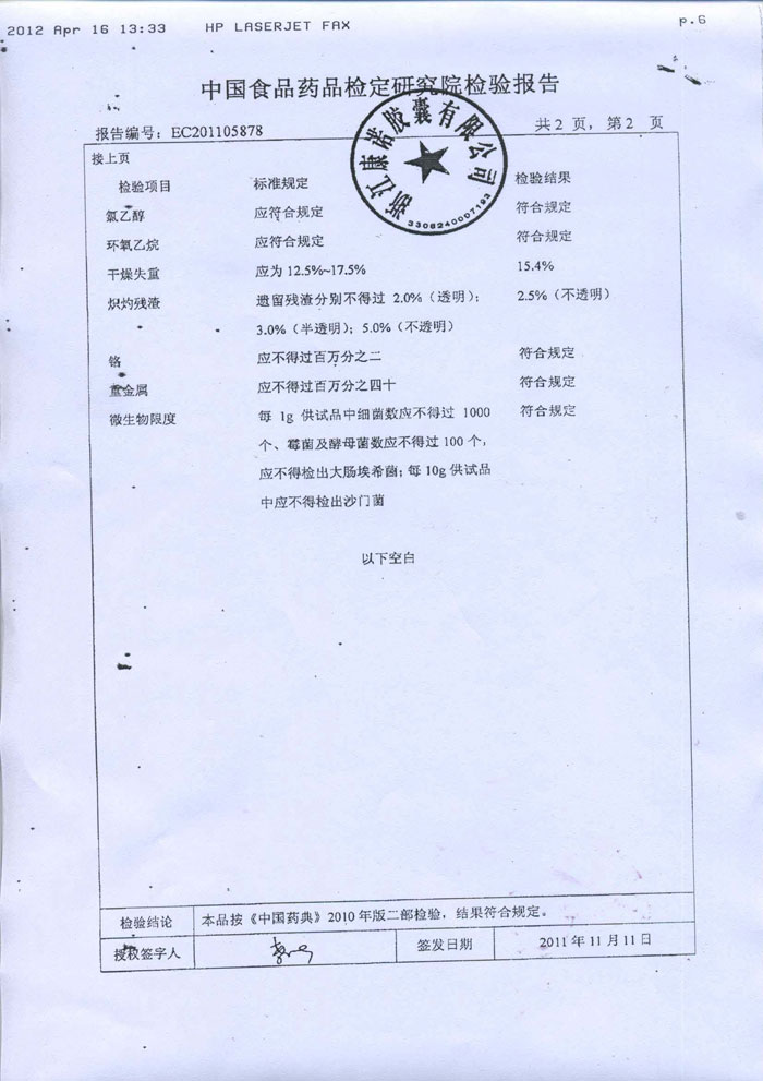 威海永康明胶检测报告2