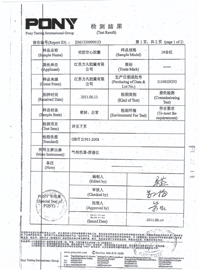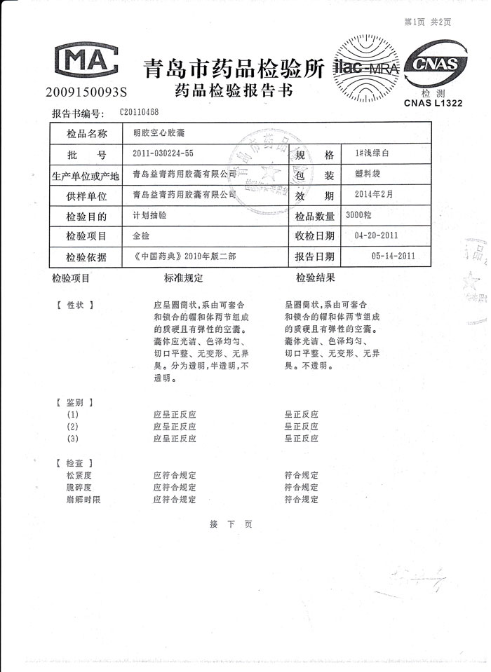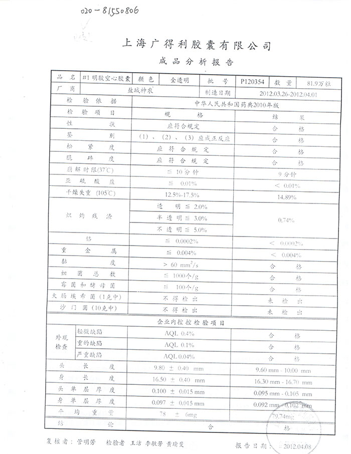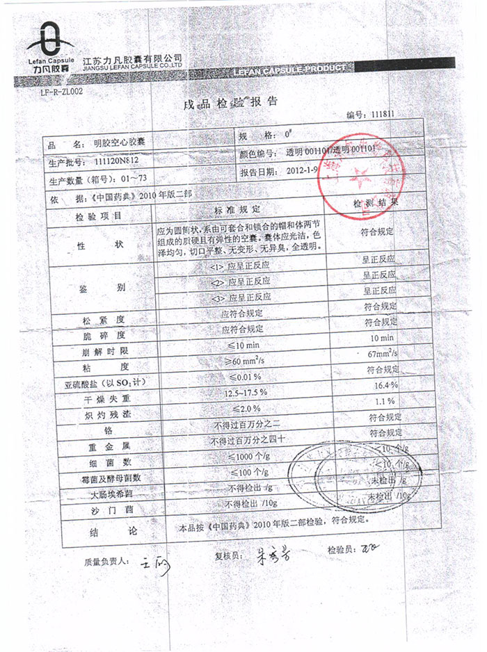 空心胶囊第三方检测(鱼油磷脂鸿洋神健字号)1