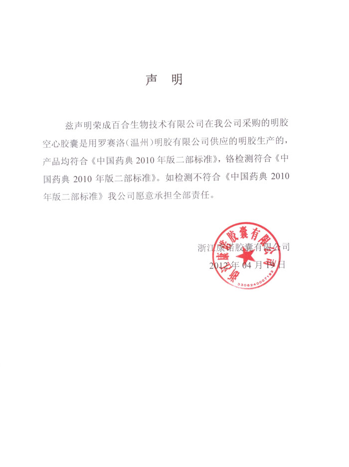 浙江康诺质量声明(鱼油卵磷脂鸿洋神)