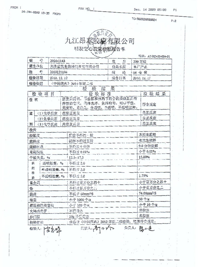 南京桃园胶囊检测报告